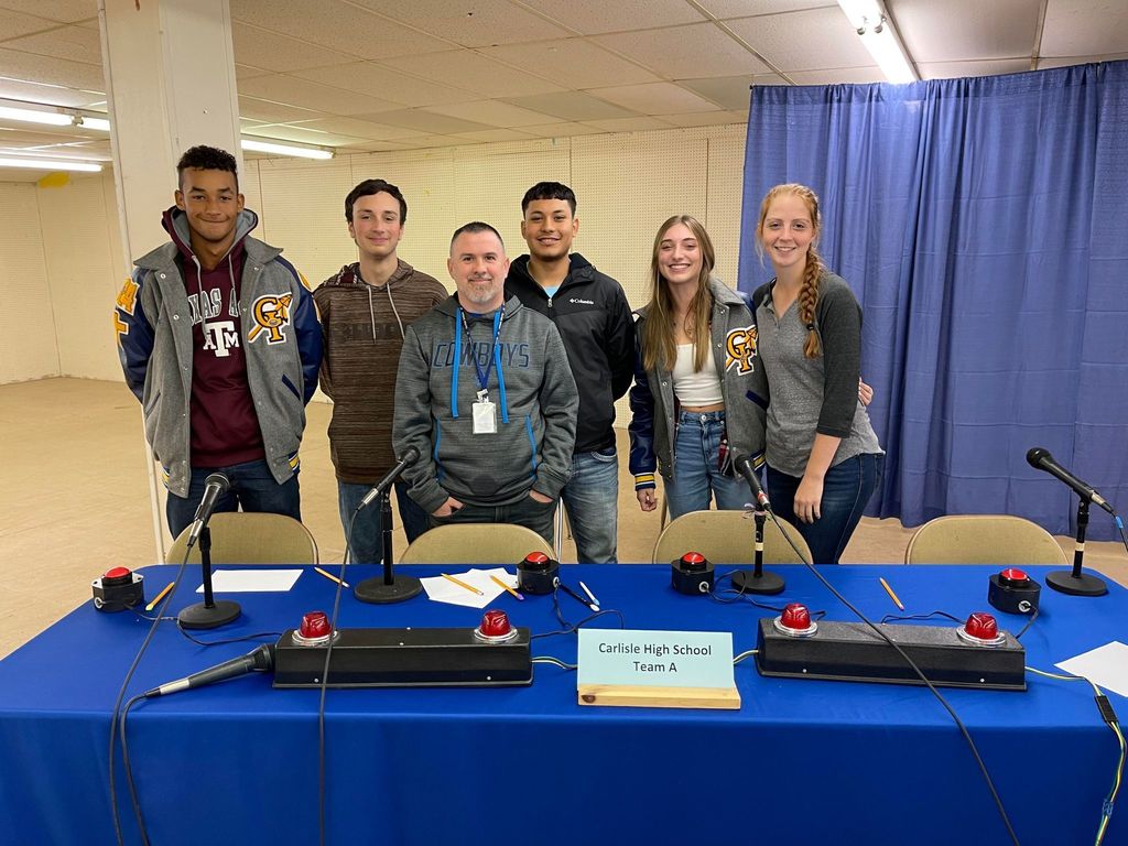 Carlisle sent 10 8th graders to Region 7 today to compete in the Citizens Bee In A Box History competition. The first round consisted of 40 multiple choice questions with the Top 10 advancing to the oral question round. David Neeley and Sarah Anglin represented Carlisle in the top 10, with David Neeley winning 1st place and advancing to the virtual State competition on April 25th. #BeeInABox #HistoryRocks #Champs